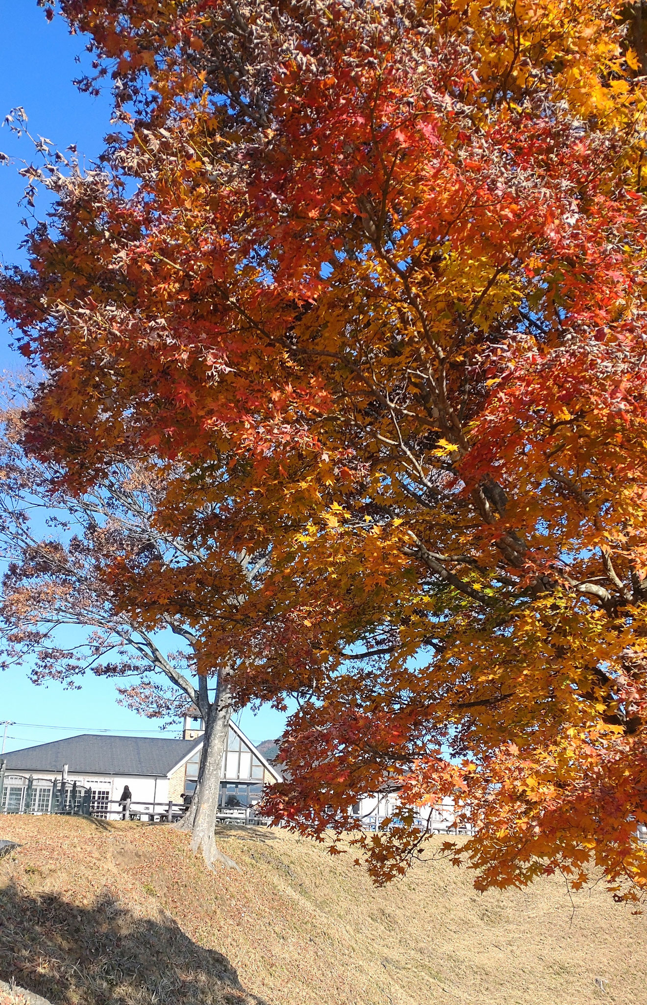 朝、晩の冷え込みもましてきて紅葉の終わりが垣間見えてきました。少しさみしいですが、落ち葉も綺麗です。葉の無い木は迫力のある枝も見事ですよ!!