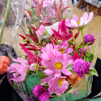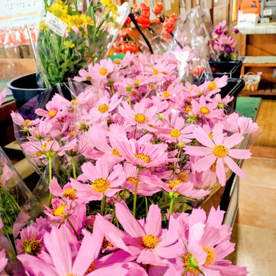 秋を感じるコスモスが入荷しています。切花は季節を真っ先に感じることのができるので、ふれあいの館に入りすぐに置いてあります!